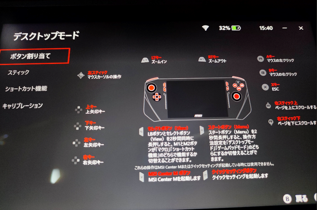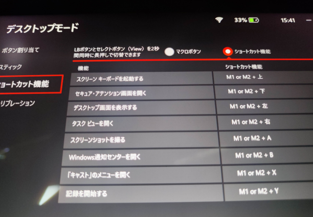 本体上のゲームパッド(コントローラー)ですが、これ、デスクトップモードに切り替えると、一部キーボードやマウスなどの代用として機能します。
