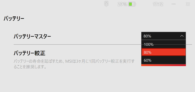 ※MSI CenterMにバッテリーキャリブレーションという機能がある