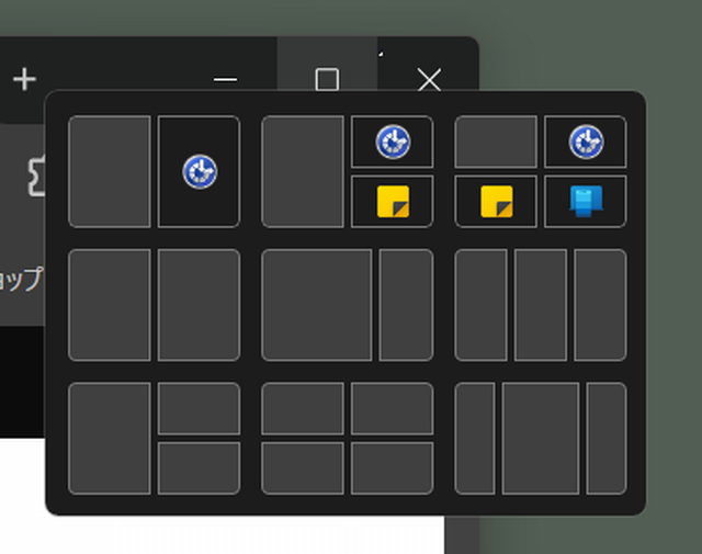Windows10辺りから、ウィンドウの最大化の所をマウスでポイントすると、こんなのが表示されるようになりましたよね。