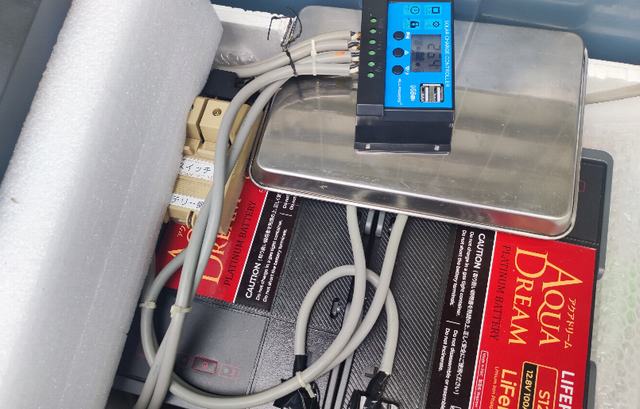 既に10年弱ほど運用してる自作ソーラーパネル蓄電施設があるので、そちらから、電気を調達できる訳です。