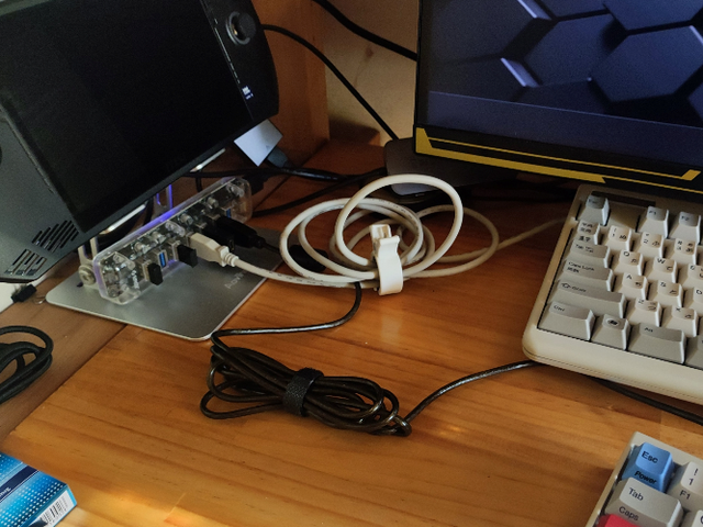 USBハブが数珠つなぎで繋がっております。皆さんもこんなでしょ?