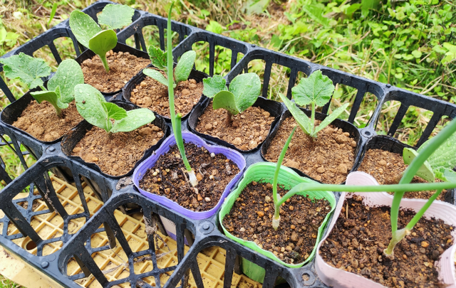 昨年、料理で出たタネ達を、4月後半頃に適当に植えて、やっとこんな状況。