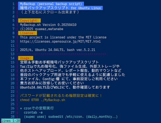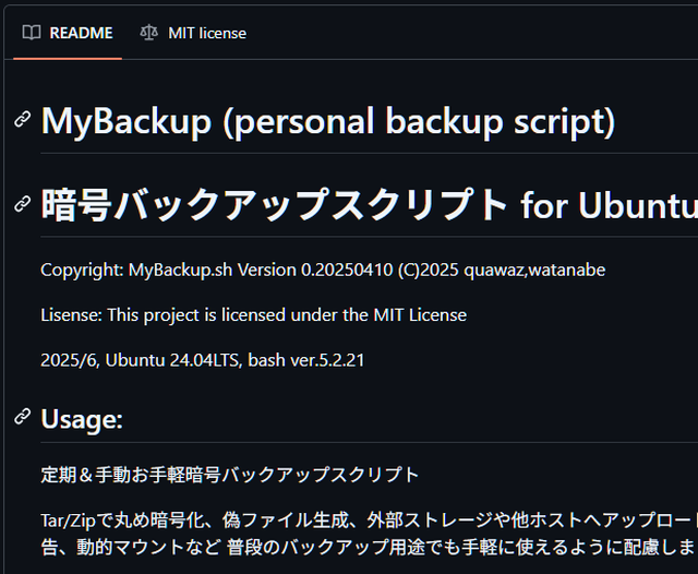 【しぇ】Bashで作ったお手軽簡単バックアップスクリプト@MyBackup.sh