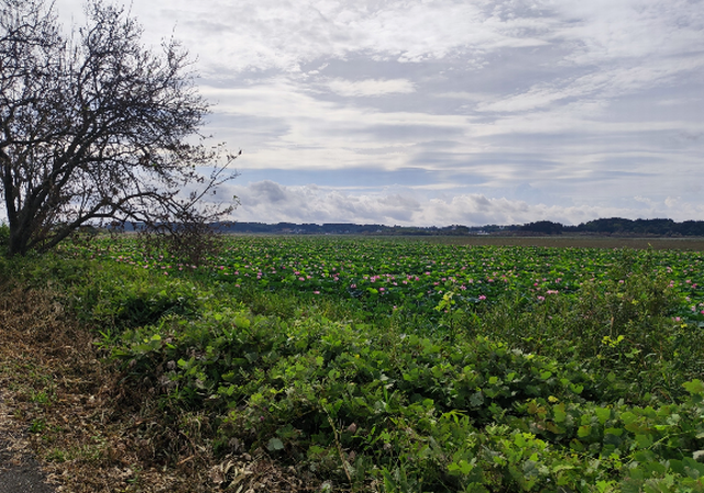 写真では分かりづらいですが、ハスの花が、一面に広がって、めっちゃ異様な光景でした。