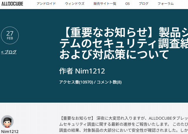 【裏戸】AllDoCubeのタブレットでバックドア騒動